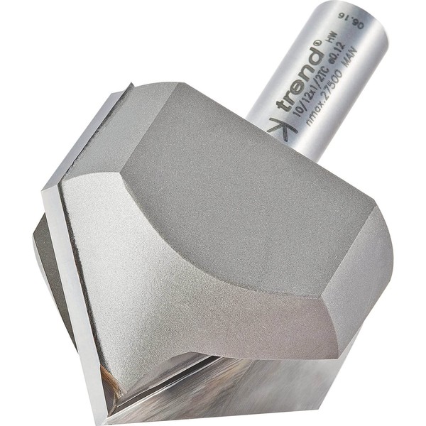 Trend Professional Chamfer V Groove Cutter, 45-Degree, 1/2 Inch Shank, 51mm Cut Diameter & 25mm Cut Length, Tungsten Carbide Tipped, 10/12X1/2TC