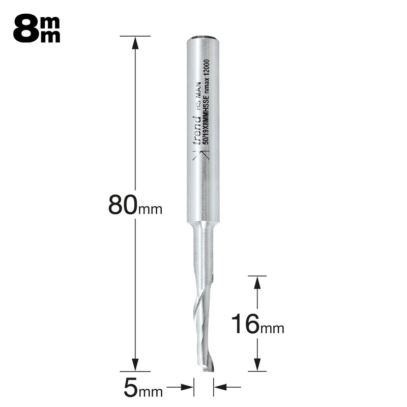 Trend Professional Helical Plunge Cutter, 8mm Shank, 5mm Cut Diameter, High Speed Steel, 50/19X8MMHSSE