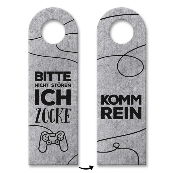 - Box contents: 1x "Bitte nicht stören, ich zocke oder Komm rein" door hanger in grey with zocker motif
