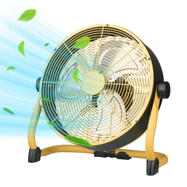 - 【Compact and Portable】14-inch industrial floor fan is designed to be compact and portable, only 5.97lbs(2.71kg). The non-slip rubber pad ensures stability and safety, built-in handle allows you to carry and put it conveniently.