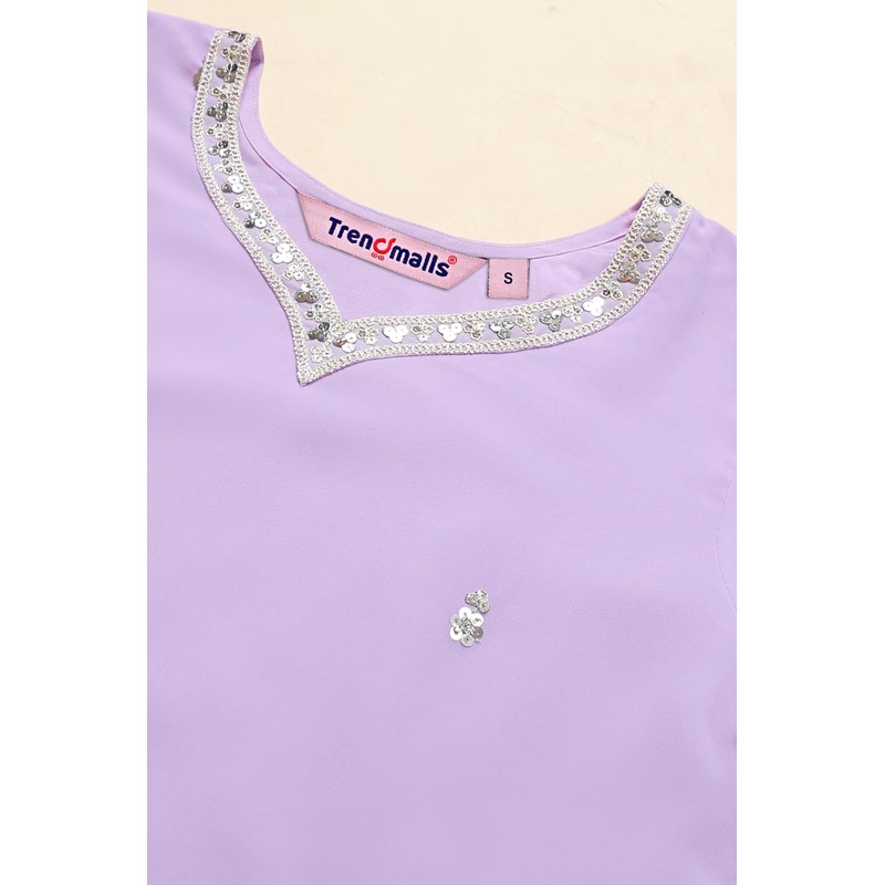 • Color: LightPurple|| Sleeves Type: 3/4 Sleeves || Neckline: Round, Potli button Work