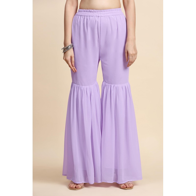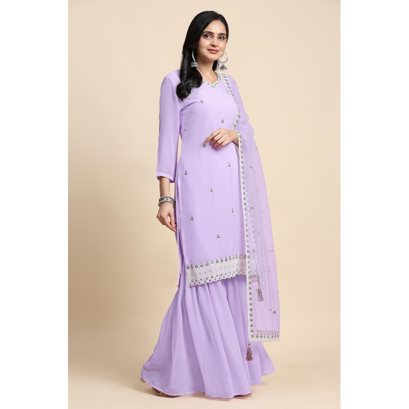 TRENDMALLS Women's Georgette Embroidery Sequins Work Kurta Sharara Set with Dupatta (G251-LightPurple-L)