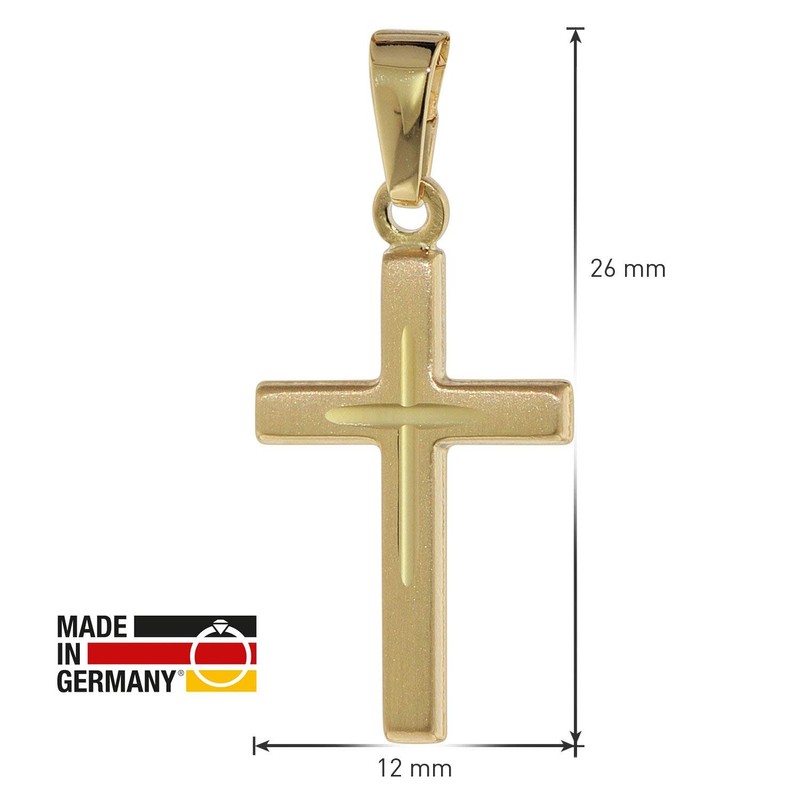 - The exclusive cross pendant made of real gold impresses with its workmanship. Comes with a gold plated chain. The gold jewellery for children gives lasting joy thanks to its timeless appearance