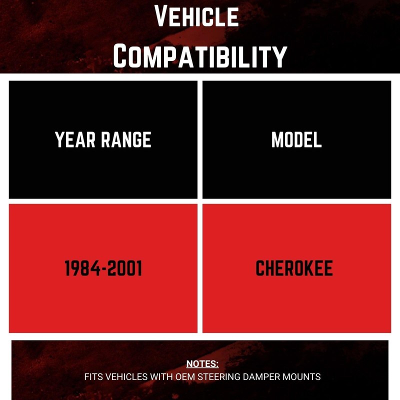 - Vehicle Compatibility: This Rancho RS5000 steering stabilizer is designed to fit 1984-2001 Cherokee with original equipment manufacturer steering damper mounts