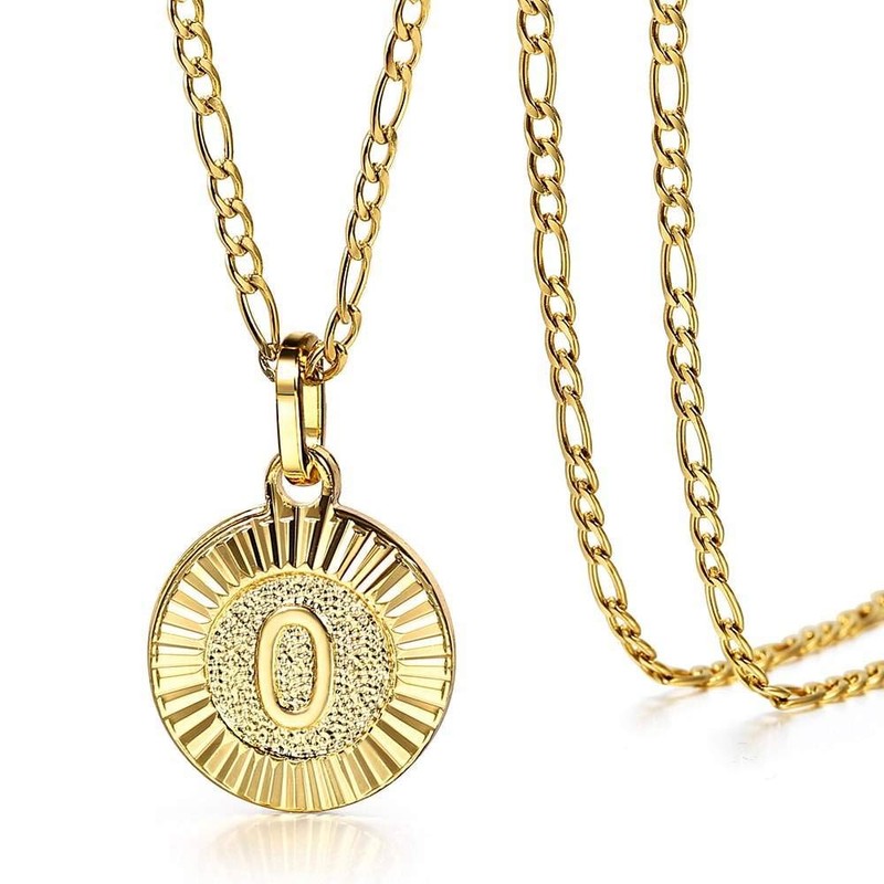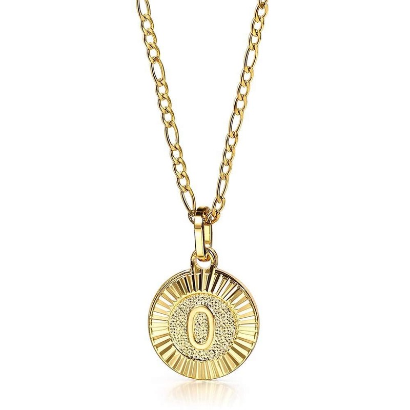 Trendsmax Initial Necklace Women Gold Plated Round Letter O Pendant Figaro Chain Necklace