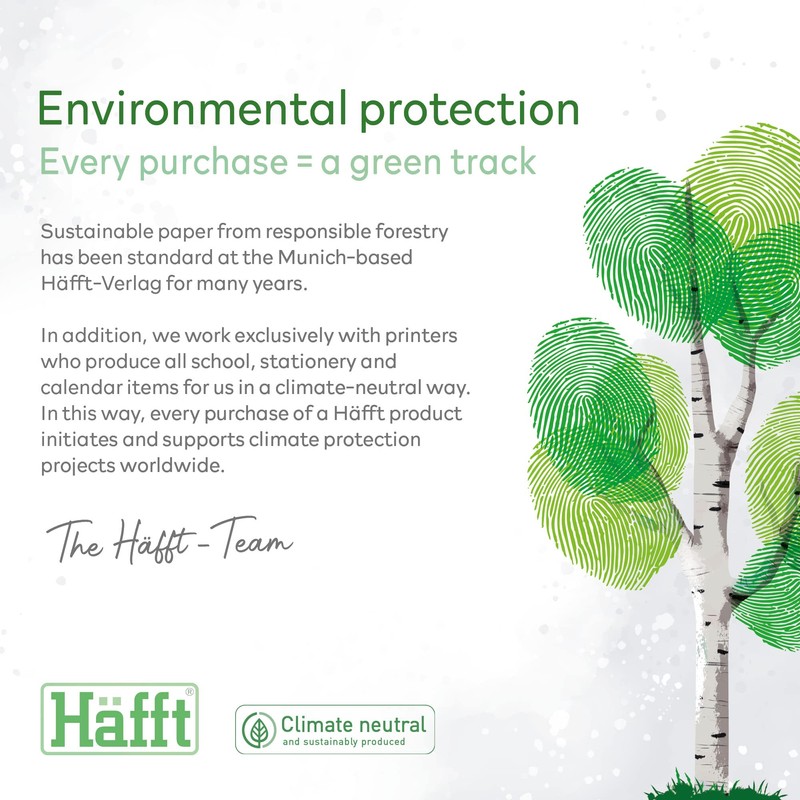 - Paper from responsible sources: Our premium 90 g/m² paper is FSC-certified and supports sustainable forest management. We also work together exclusively with printers, which print in a climate-neutral way.