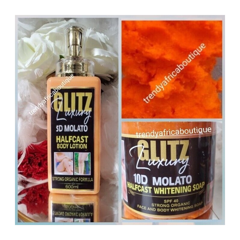 trendy 2pcs. GlitzLuxery 10D molato Rich Soap Spf40 & Half-D MOLATO BODY Lotion Only.