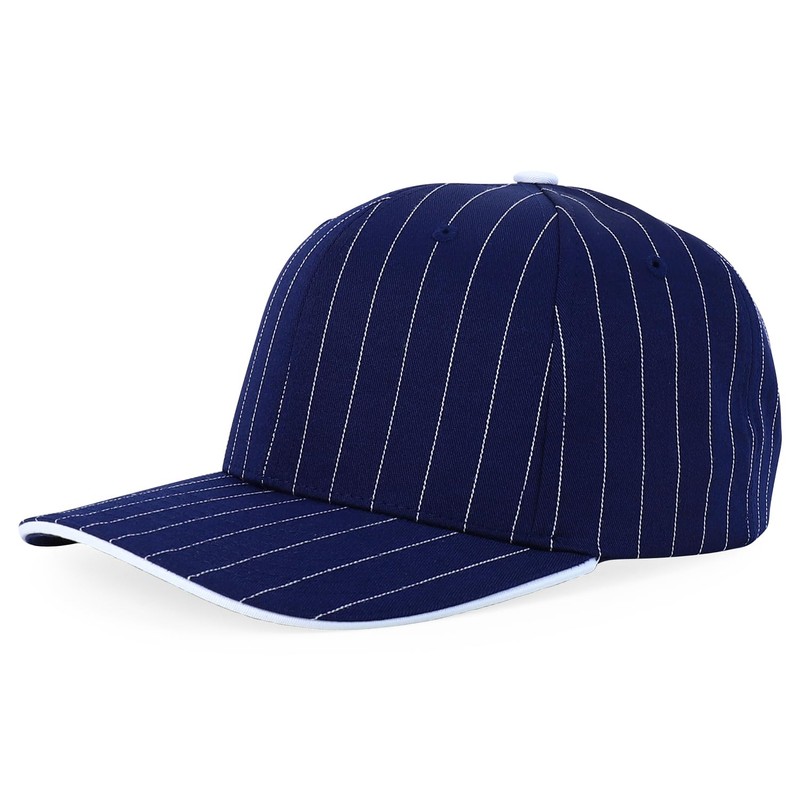 Trendy Apparel Shop 6 Panel Structured Pinstripe Snapback Baseball Cap - Navy White
