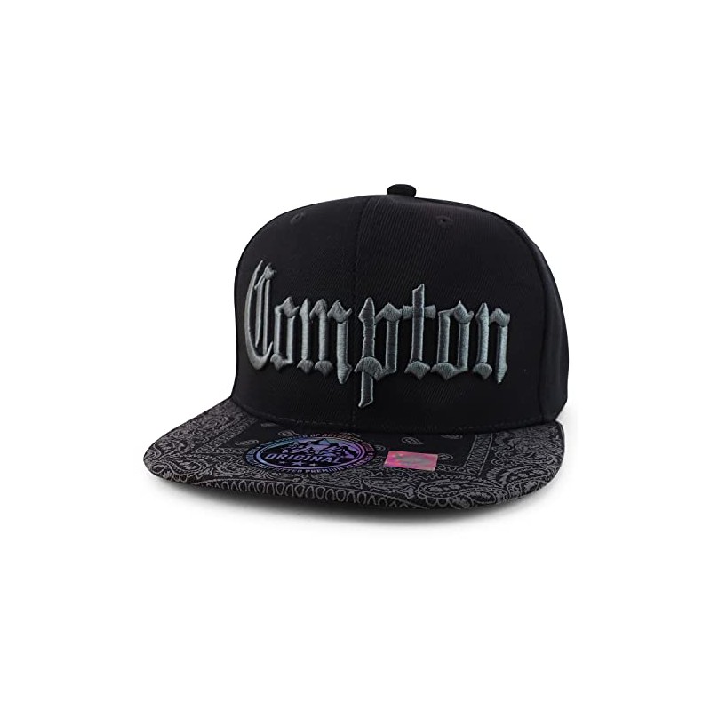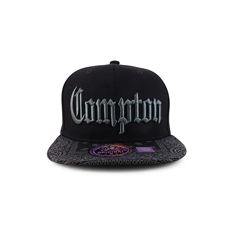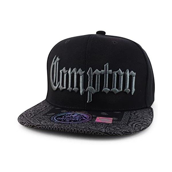 Trendy Apparel Shop Compton Old English Font Embroidered Bandana Flatbill Cap - Charcoal