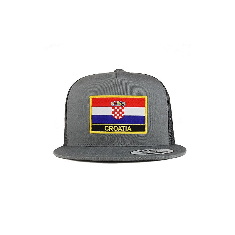 Trendy Apparel Shop Croatia Flag 5 Panel Flatbill Trucker Mesh Snapback Cap -...
