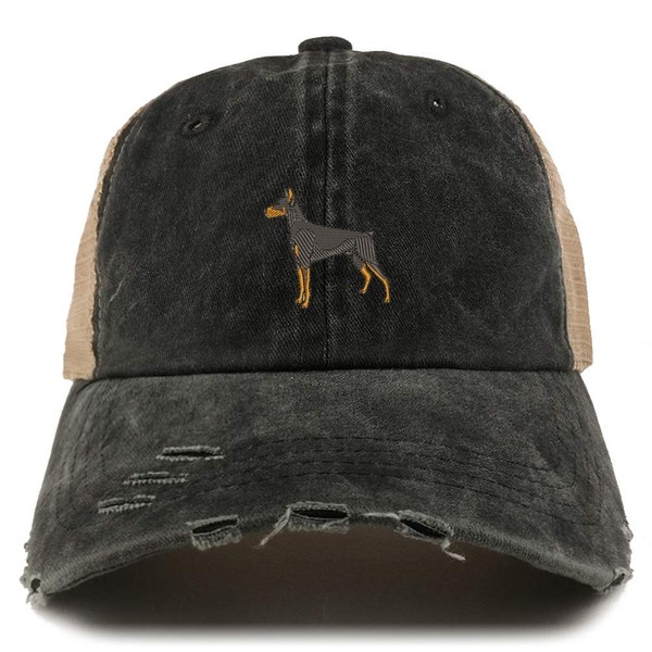 Trendy Apparel Shop Doberman Dog Embroidered Frayed Bill Trucker Mesh Back Cap - Black