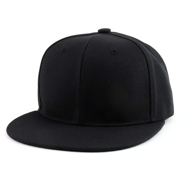 Trendy Apparel Shop Infant to Youth Plain Structured Flatbill Snapback Cap - Black - Youth
