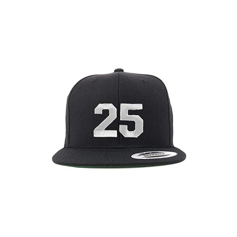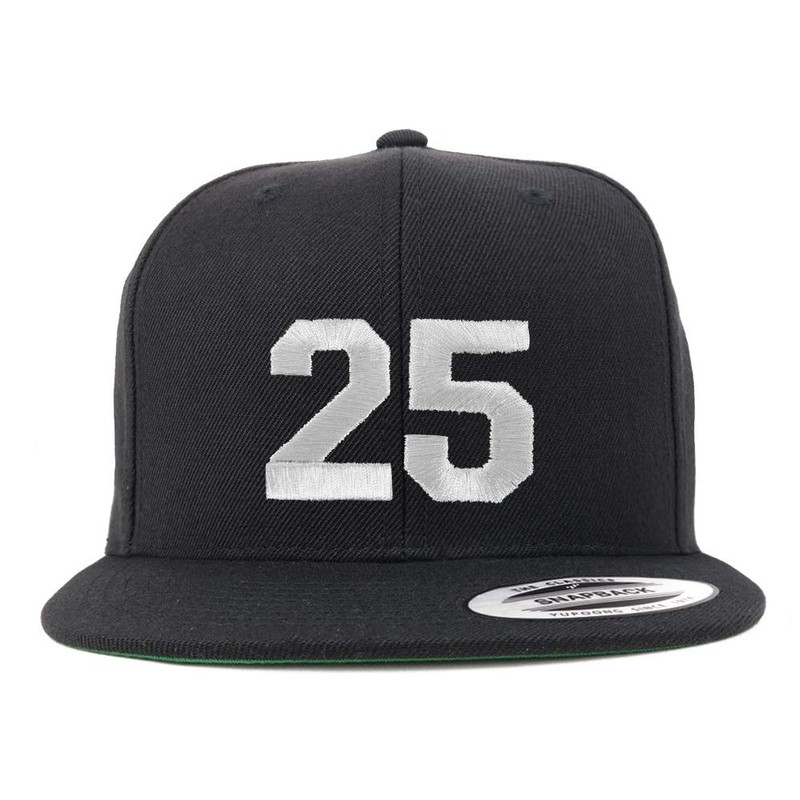 Trendy Apparel Shop Number 25 White Thread Embroidered Flat Bill Snapback Baseball Cap - Black