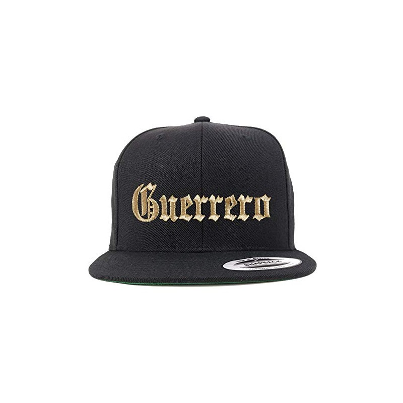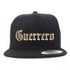Trendy Apparel Shop Old English Guerrero Gold Embroidered Flatbill Snapback Baseball Cap- Black
