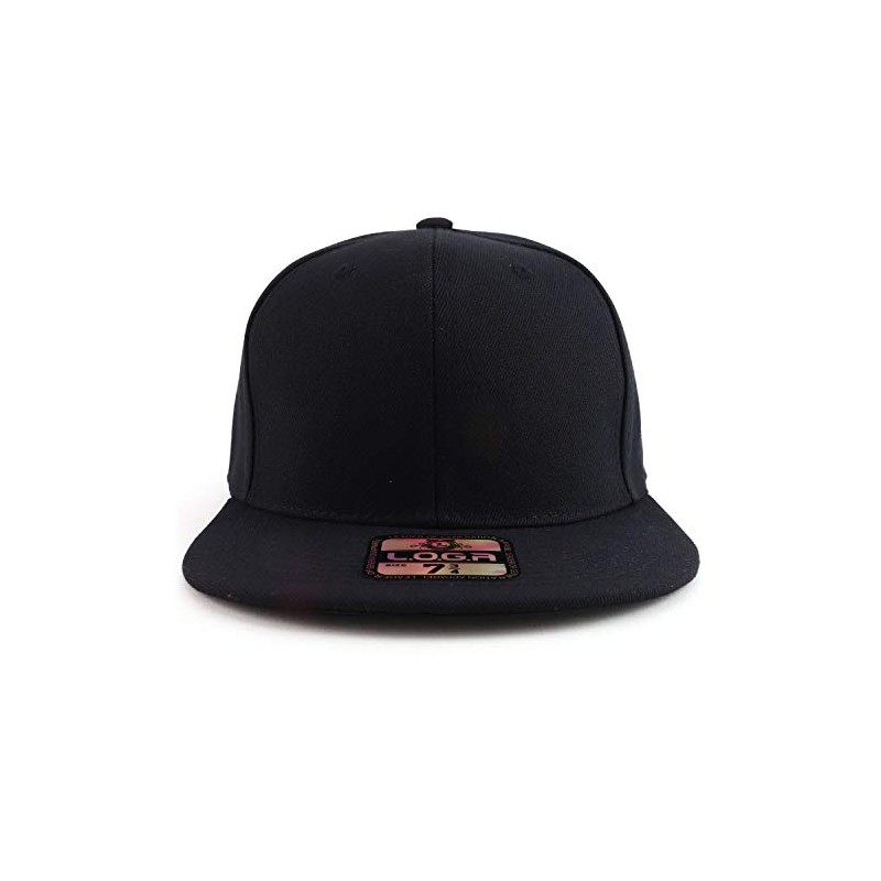 Trendy Apparel Shop Plain High Profile Flat Bill Snapback Baseball Fitted Cap - Black - 7 3/4