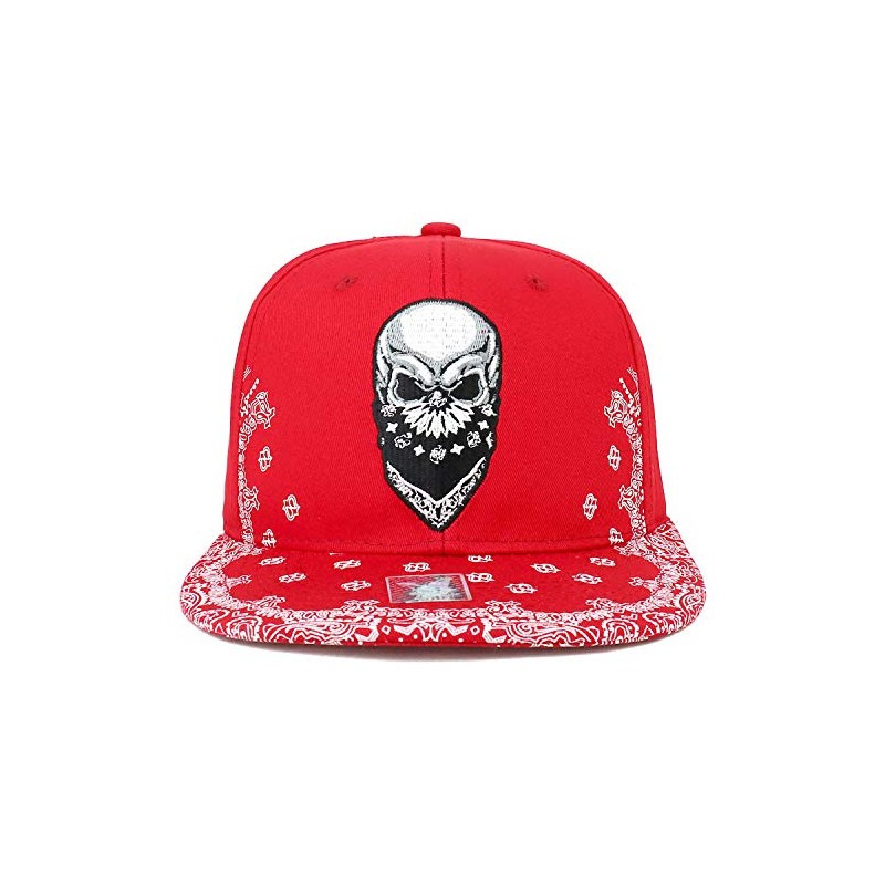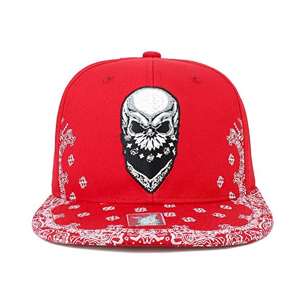 Trendy Apparel Shop Skull Bandana Embroidered Snapback with Paisley Print Flatbill Cap - Red