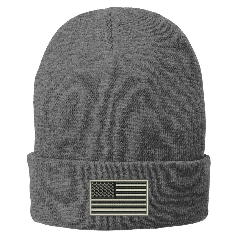Trendy Apparel Shop US American Flag Grey Embroidered Winter Folded Long Beanie - Grey