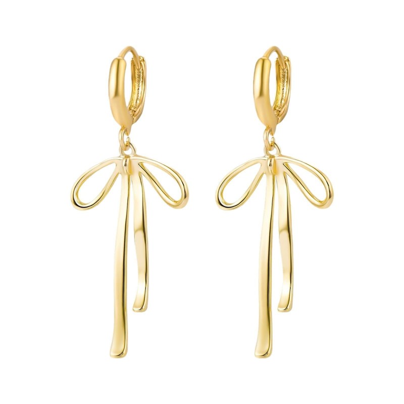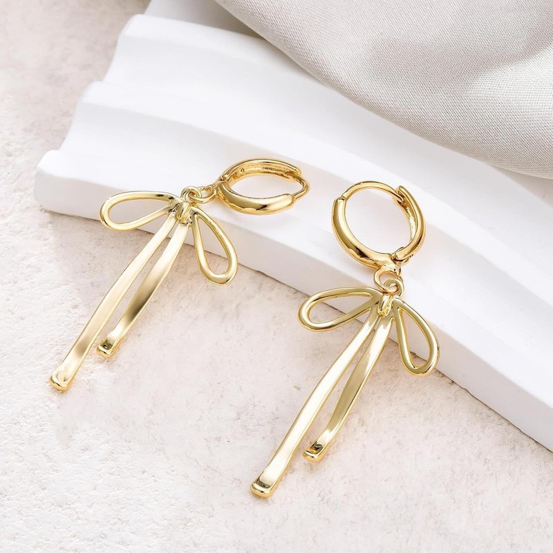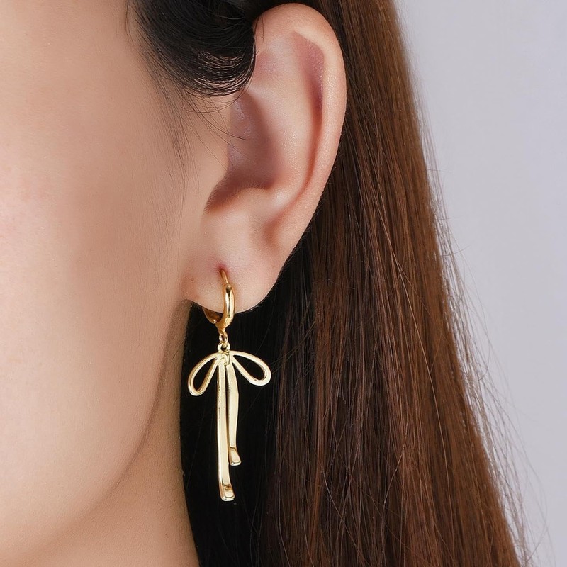 Trendy Bow Earrings for Women Cute 14K Gold Bow Knot Stud Hoop Earrings, Charm Long Drop Dangle Christmas Hook Huggie Ear Jewelry Gifts (Gold 3)