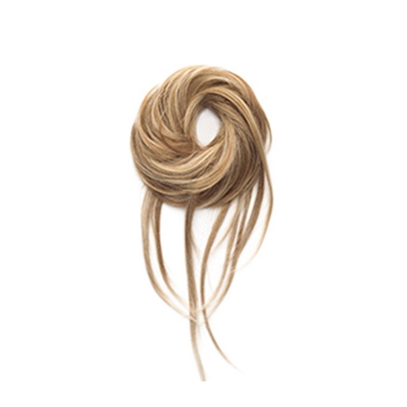• The Trendy-Do by hairdo has this versatile, patented hair wrap on an elastic band consists of various lengths of hair from 5 ½" to 13” and features cascading tendrils. Create many looks - updo, chignon, wavy wrap or a piece-y pony. Made with Tru2Life heat friendly fiber, these contrasting lengths can be worn curly, straight …or for a fun silhouette, try mixing the textures up!