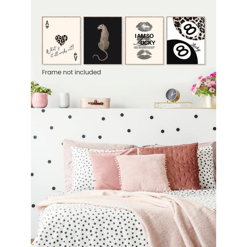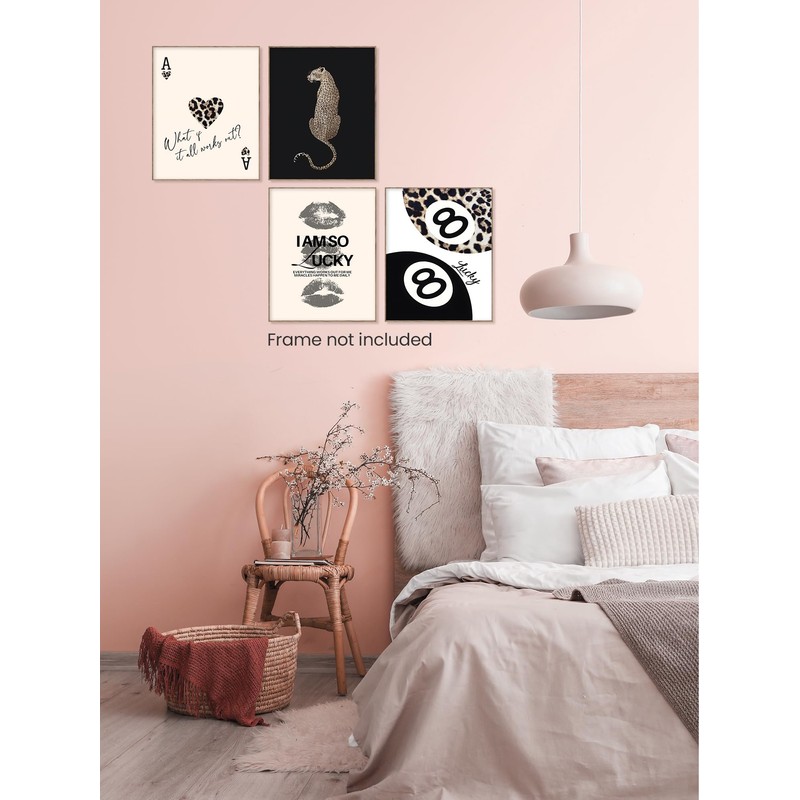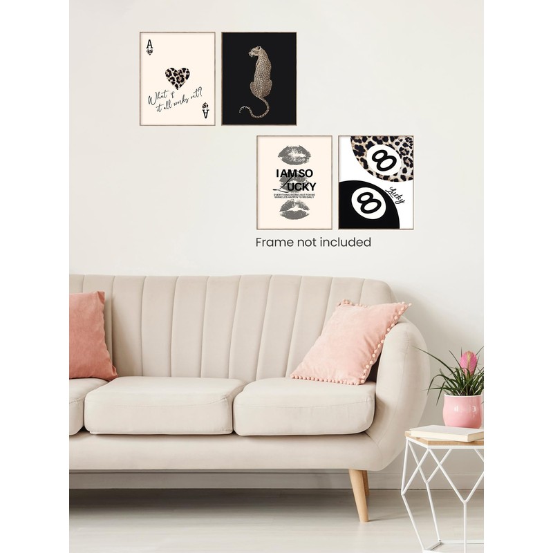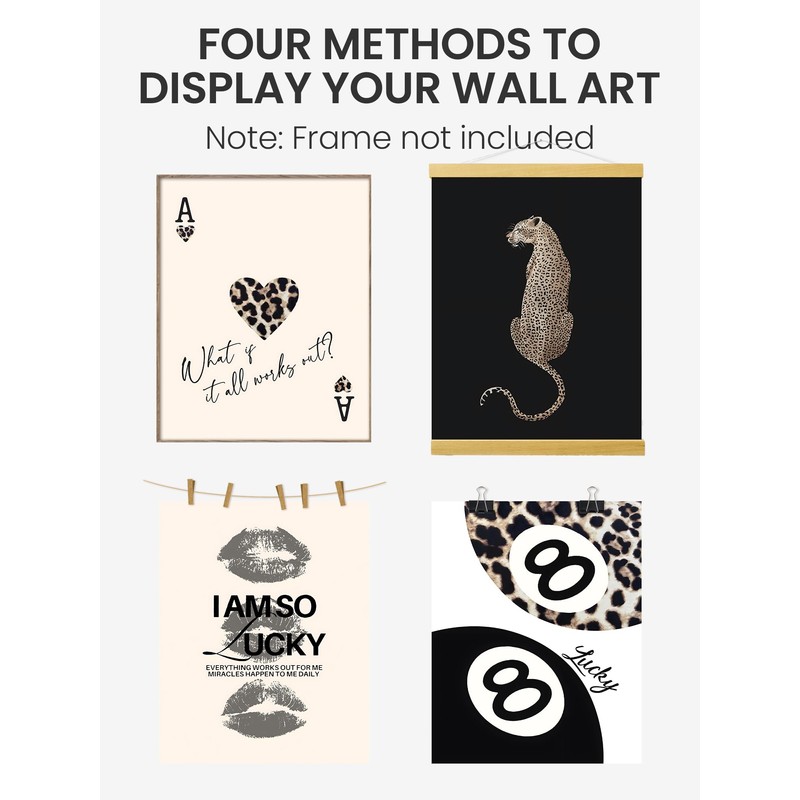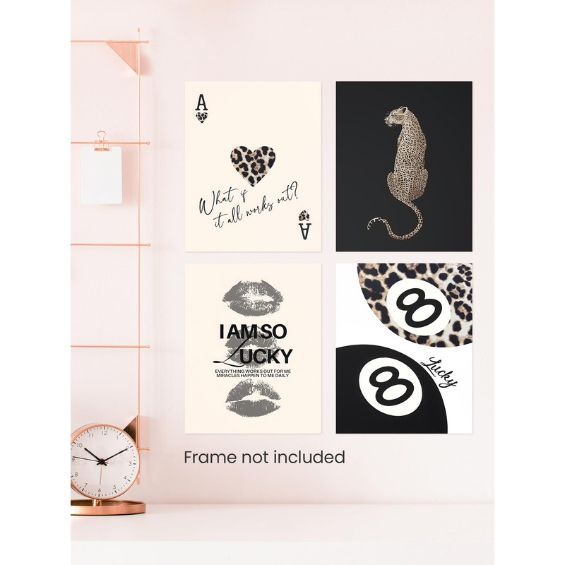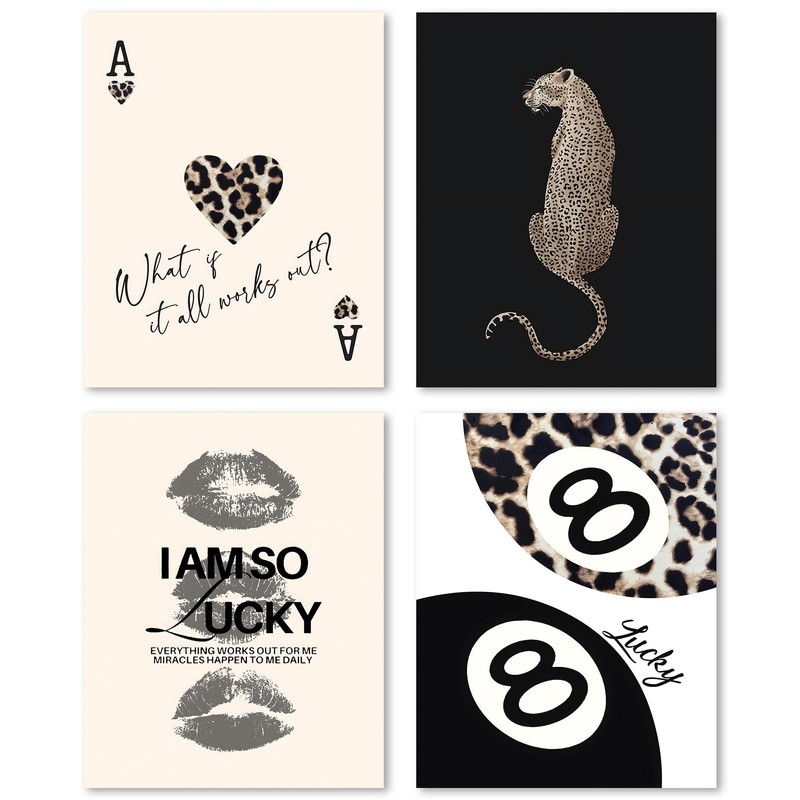 Trendy Leopard Print Lucky Girl 8 Ball Lips Cheetah Ace of Hearts Playing Card Wall Art Prints Set of 4, Funky Y2K Aesthetic Leopard Poster Wall Decor for Girls Room Dorm Apartment, 8x10 Unframed