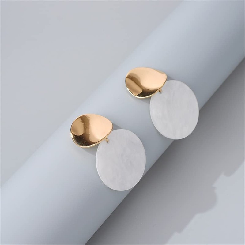 Trendy Light Weight Round White Shell Dangle Earrings for Women Gifts Metal Charming Bohemian Geometric Retro Drop Dangle Earrings (White Shell Stud Earrings)