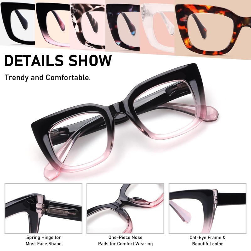 - Cat Eye Reading Glasses for Women - Stylish cat eye frames that is both retro and lightweight at the same time, cute designer readers with skin-friendly one-piece nose pads and durable spring hinges that fit your face perfectly, comfortable to wear for a long time