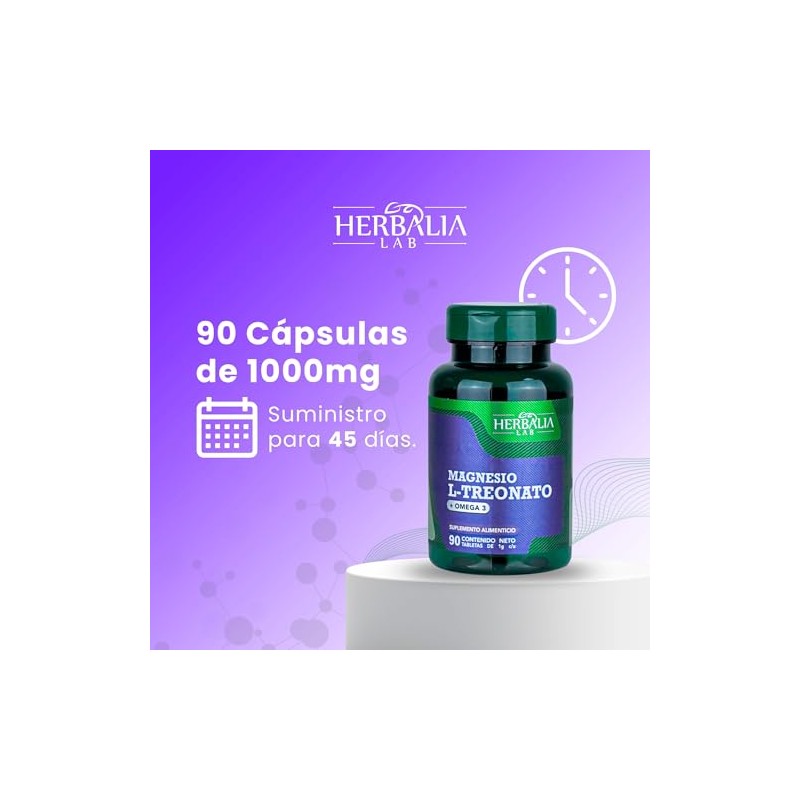 Treonato de Magnesio + Omega 3 - Magnesium Threonate 1000 mg - Boost Nootrópico y apoyo Cardiovascular - Apoyo Natural para el Bienestar Diario - 90 Cápsulas Herbalia Lab
