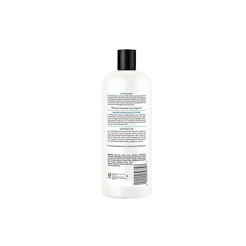 Dry hair is a nightmare. Restore your thirsty locks with TRESemmé Smooth & Silky Conditioner for a boost of intense hydration that transforms dry hair into plush, sleek locks. Without the right heat protectants and daily hydration, it’s almost impossible to avoid the harsh heat damage from flat irons, curling irons and blow dryers. TRESemmé Smooth & Silky Shampoo and Conditioner system delivers intense moisture where your hair needs it most, calming frizz and taming pesky flyaways without weighing your hair down. Our advanced smoothing TRESemmé Smooth & Silky Conditioner, infused with lush Moroccan Argan oil, helps hydrate your unruly tresses, leaving them silky soft and up to 7x smoother.* *TRESemmé Smooth & Silky Shampoo and Conditioner system vs. non-conditioning shampoo Start with TRESemmé Smooth and Silky Shampoo. Apply an adequate amount to first cover mid-shaft to ends. Work anything that's left through roots. Run a wide-tooth comb or fingers from roots to ends to detangle and fully coat hair. Follow with TRESemmé Smooth and Silky Conditioner. Leave on 2-3 minutes, rinse thoroughly and style with your favorite TRESemmé Smooth & Silky styling aids. TRESemmé Smooth & Silky Conditioner moisturizes hair without weighing it down, giving you fabulously smooth, silky-soft tresses.
