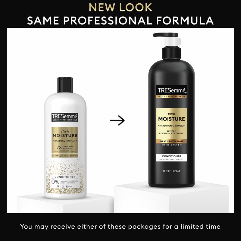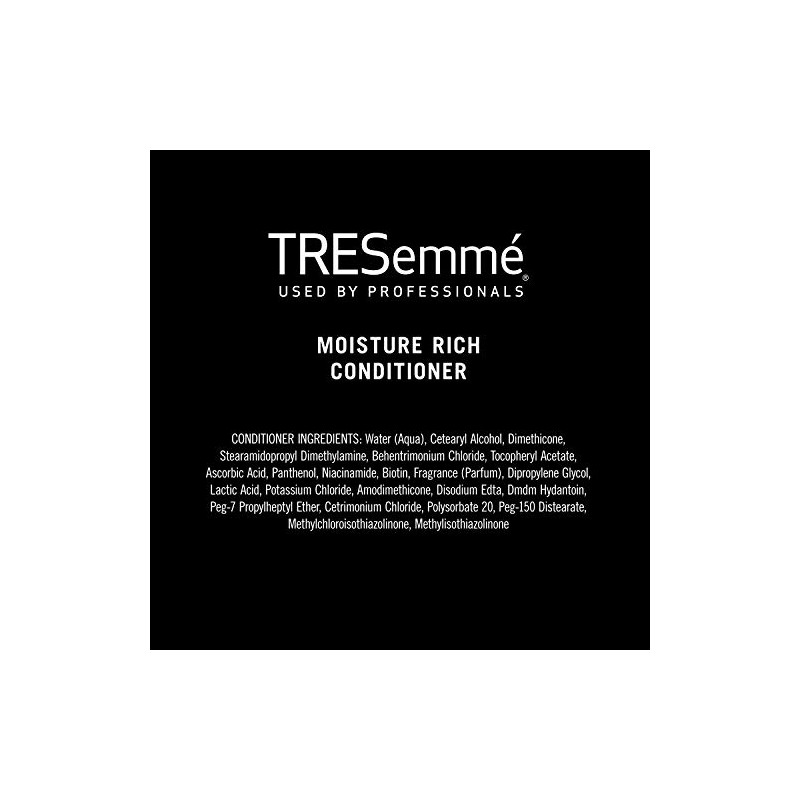 Discover the hydrating power of TRESemmé Rich Moisture Conditioner, designed to restore, replenish, and detangle your hair with professional quality. Our advanced formula, infused with Hyaluronic Acid, works from the first wash to provide heat protection that starts in the shower. Say goodbye to dry, tangled hair and hello to a professional quality, brilliant look. Rich Moisture Conditioner is free from parabens, mineral oil, and DMDM hydantoin and is PETA-approved to ensure your hair receives the best possible care without compromising on quality. To achieve the best results, start with Rich Moisture Shampoo and follow with TRESemmé Protecting Heat Styling Spray for additional heat up to 450 degrees so you can heat style with confidence. Lock in your style and moisture with our Extra Hold Hairspray, providing all-day hold and frizz control. For over 70 years, TRESemmé has been committed to democratizing salon trends, making salon-quality products accessible to everyone, every day. You can count on TRESemmé for trend-inspired, professional-grade products designed to maximize ooh la la in the everyday. So as you navigate your styling journey, we’ll be here to help you style your hair (and life) your way.