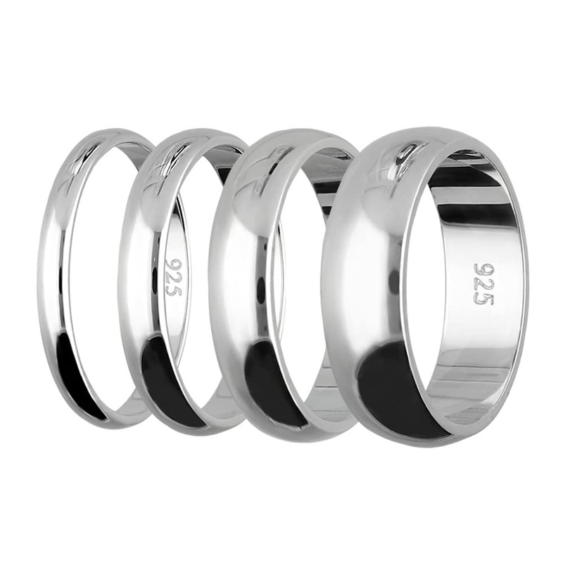 The classic among the rings is a timeless, elegant silver finger ring. We offer you 12 different ring sizes and 4 ring widths, so that everyone can find the right piece of jewellery and these can also be worn perfectly as partner rings, engagement rings or even wedding rings. The different widths and the other colours from our real jewellery range can be perfectly combined with each other. This beautifully shiny ring is made of 925 sterling silver and is therefore rust-proof, scratch-free and nickel-free. This ensures that this women's and men's ring is a durable piece of jewellery.