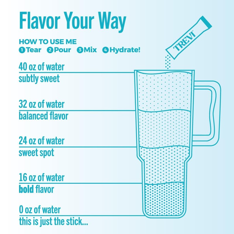 - A Fountain of Flavor: At Trevi, we believe hydration should never be boring, which is why we developed a daily electrolyte powder hydration enhancer that doesn't skip on taste while is also rich in vitamins, minerals and ingredients. With Zero Sugar, No Artificial Dye Coloring, Pink Himalayan Sea Salt, Trevi electrolytes are full of the good stuff while it hydrates and replenishes you throughout your daily life.
