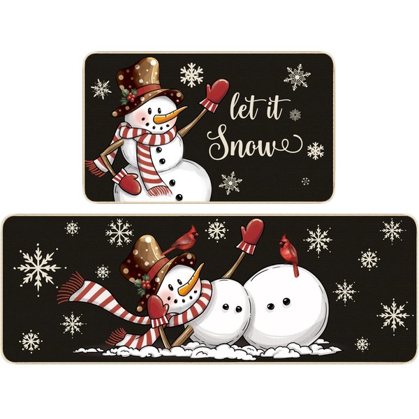 TREWAVE Christmas Kitchen Rugs Snowman Door Mat Set of 2 Let It Snow Welcome Non-Slip Floor Mat Xmas Winter Holiday Home Kitchen Bathroom Decor (17x29 17x47 Inch)