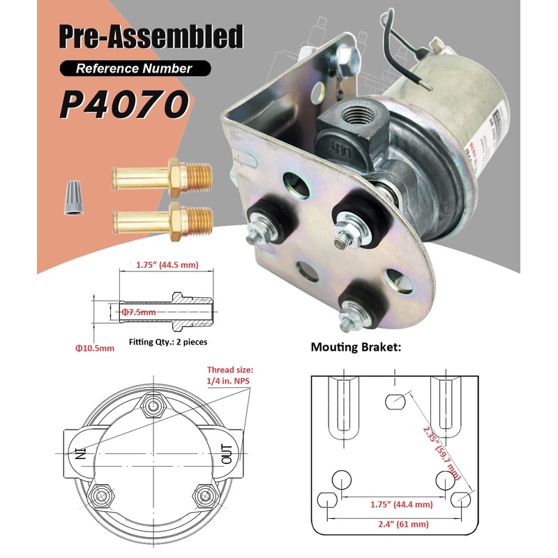 • [Simple and quick install] P4070 fuel pump Pre-assembled onto the metal bracket, Easy to install directly without so many kits in one box causing headache.