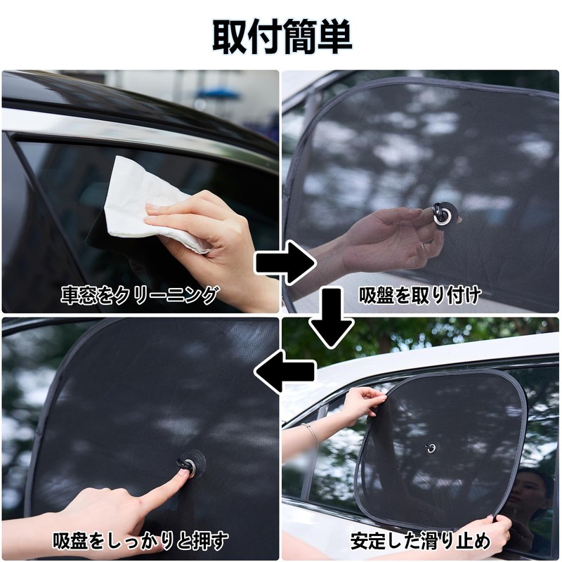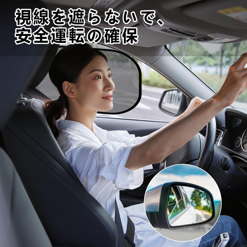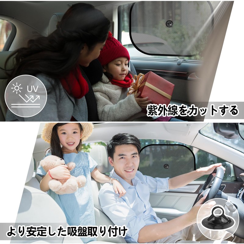 - [Light shielding insulation] This car sunshade is made of mesh material and has UV protection. Protects your interior from direct sunlight with excellent light blocking and heat shielding properties. By attaching it to the glass on the side or rear seat, you can block the light and reduce the temperature of your car. Also recommended for homes with children