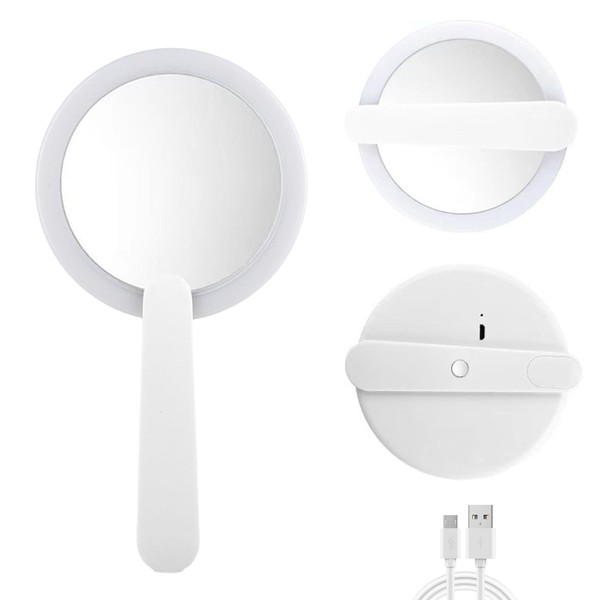 Trez Treamer Handheld Rotating LED Cosmetic Mirror,Portable Rechargeable Makeup Mirror with Rotating Switch, Perfect Makeup Tool for Travel and Home Use White