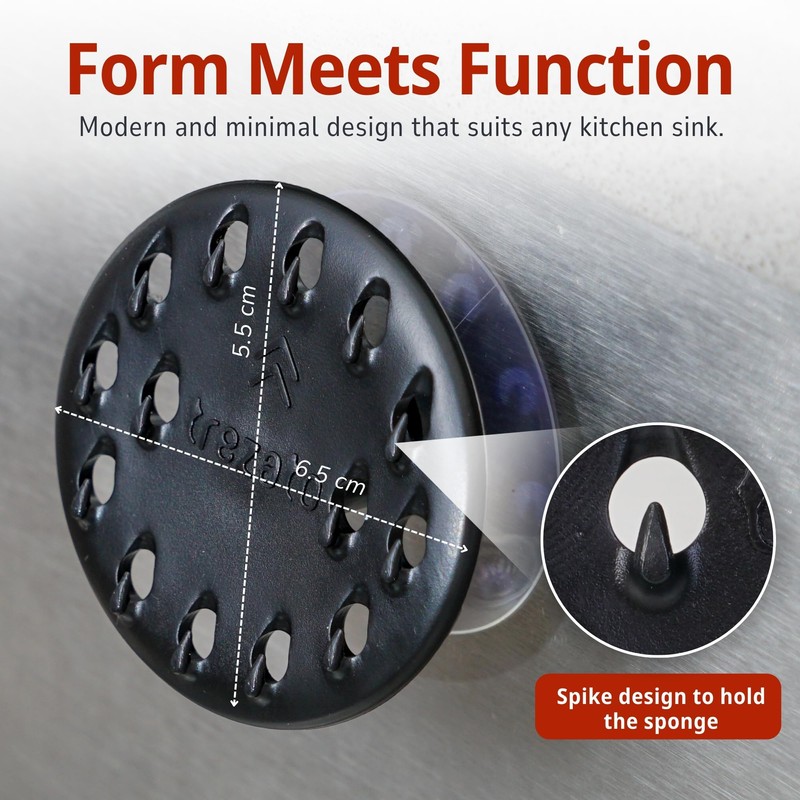 Trezato Sponge Holder for Kitchen Sink, Made in Canada, Rapid Drying, Sponge Holder with Suction Cup, Modern and Space-Saving (Matte Black)