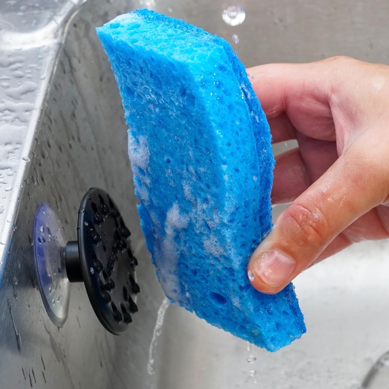 - NO MORE STINKY SPONGE: This kitchen sponge holders open-air design promotes optimal drainage, enabling rapid drying, while the sturdy suction cup ensures a reliable grip, keeping the holder securely in place. Lightly wet the suction cup or apply a bit of petroleum jelly to maximize its suction.