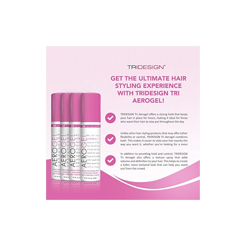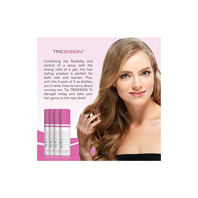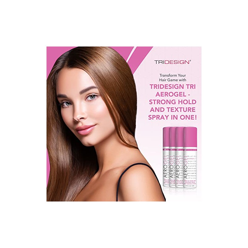 - TAMAÑO PARA VIAJAR: Nuestra laca para el cabello de 3 onzas de Aerogel TRI Design es el compañero de viaje perfecto. Compacto y conveniente, cabe fácilmente en tu bolso o equipaje de mano, asegurando que puedas mantener tu estilo elegante sobre la marcha sin ningún problema.