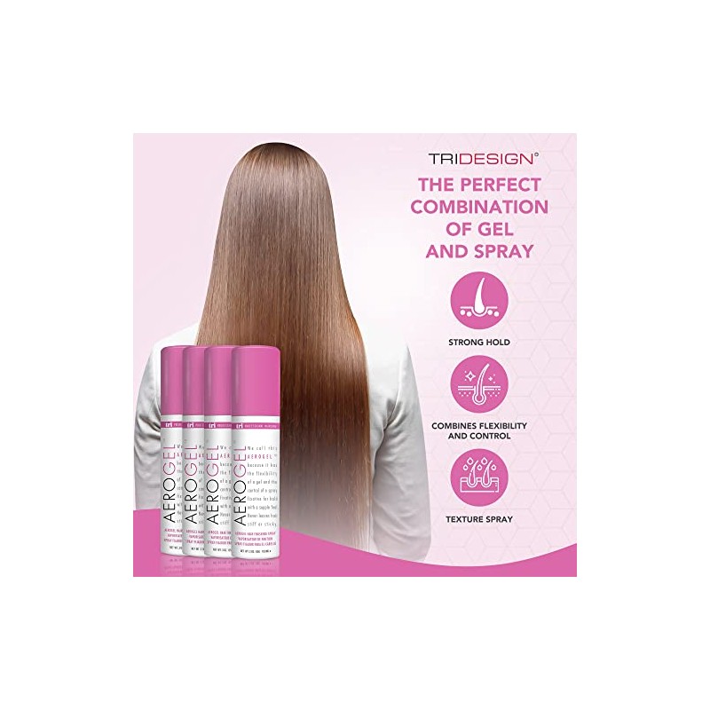 TRI Design Aerogel - Spray de acabado de cabello de fijación fuerte para dar volumen y control, peinado flexible para todo tipo de cabello, no pegajoso y perfumado, para mujeres y hombres, tamaño de
