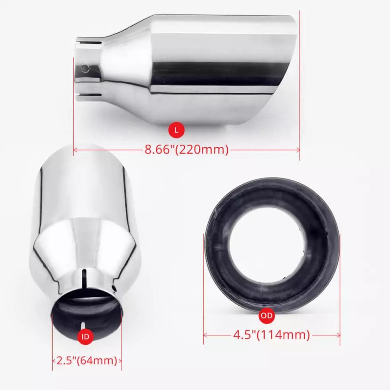 - Tip Installation Type: Clamp-on Exhaust Tip