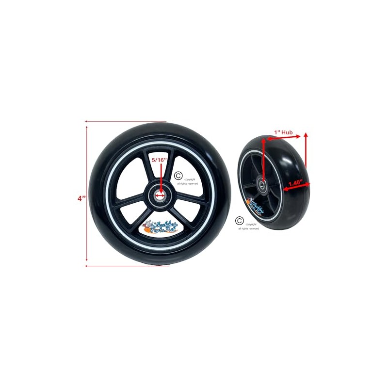 Tri-Star 4" x 1.40" 3-Spoke Caster Mag Wheel Colorful Ring, Soft Polyurethane Foam Tire and 5/16" Bearings Fits Many Standard Manual Wheelchairs