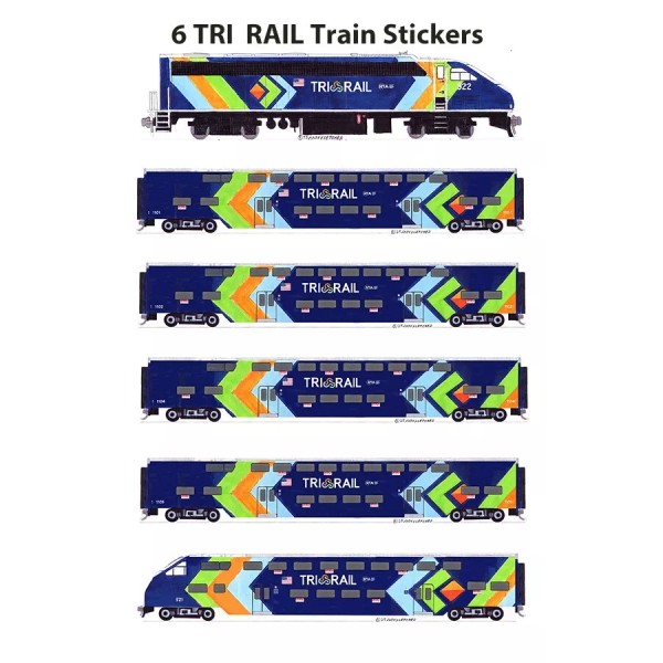 Tri-Rail Miami Commuter Train Current Paint 6 individual Stickers Andy Fletcher