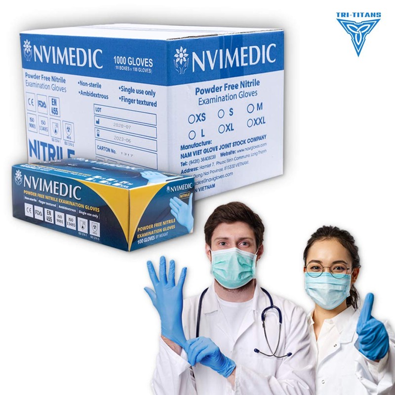 Tri-Titans GL131M NVIMEDIC Nitrile Examination Gloves Powder- free Strong & Safe Box of 100 (Medium), Blue