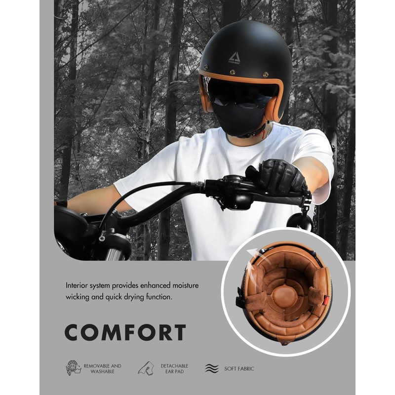Crafted with a high-quality ABS shell, the Vintage Open Face Helmet is built to last. ABS, or Acrylonitrile Butadiene Styrene, is known for its excellent impact resistance and durability, making it an ideal material for motorcycle helmets.