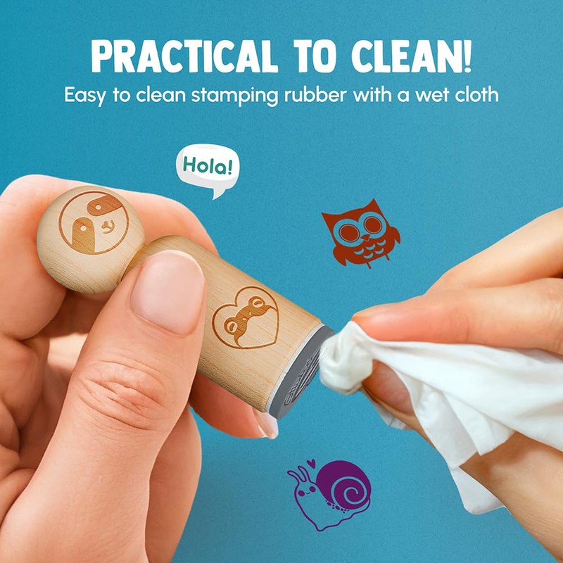 The long natural hardwood handle keeps fingers away from the ink to eliminate smudging and messes. Use with traditional stamp ink pads, acrylic or watercolor paints, and more. Easy to clean with a wet cloth.