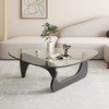 Triangle Coffee Table in Walnut Mid Century Modern Solid Wood Base and Triangle Clear Glass Coffee Table for Living Room Low Minimalist Tea Table Coffee Tables (36 * 25.6 * 16, Black Transparent)