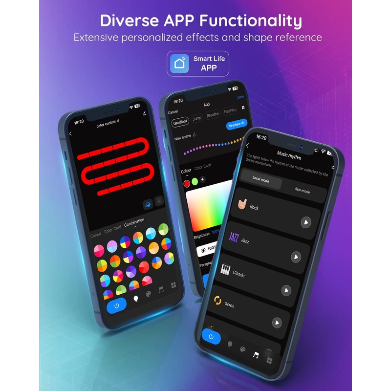 - 【TRIPLE CONTROL METHOD】Welcome to the smart home era! Nestled in your couch or juggling tasks? Fret not! Simply Control your ambient lights effortlessly with simple voice commands using Alexa or Google Assistant. Tapping preferences in our intuitive app, or simply using the handy remote control, experience unparalleled convenience in lighting up your world. Seamlessly integrate these illuminating panels into your modern living. (Not Support 5G)