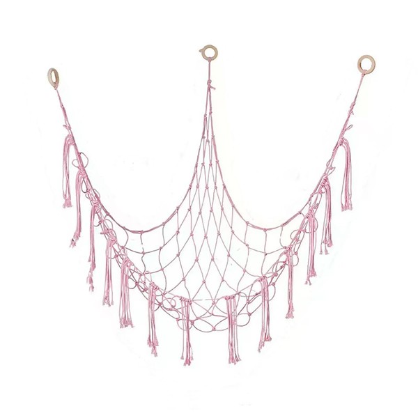Triangle toy mesh bag, hand woven lace hammock, toy storage bed with three seamless hooks (pink)
