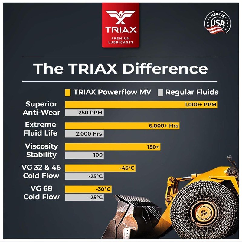 TRIAX Powerflow MV 32 Hydraulic Oil, 6000 Hour Extended Life, Double Anti-Wear, True All Season, -40 F Pour Point (1 Gallon)