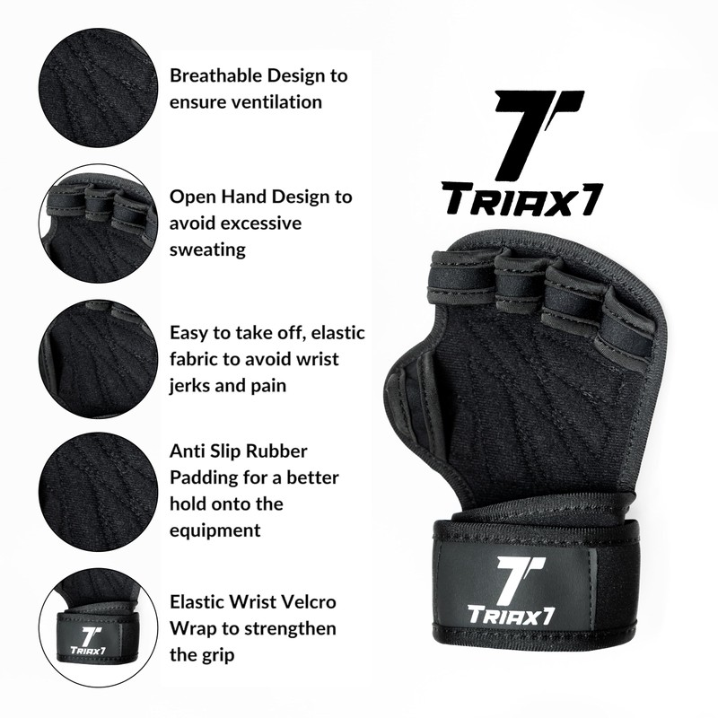 TRIAX7 Ventilated Weight Lifting Gloves with Wrist Wraps, Gym Fitness, Cross Training (X-Large)